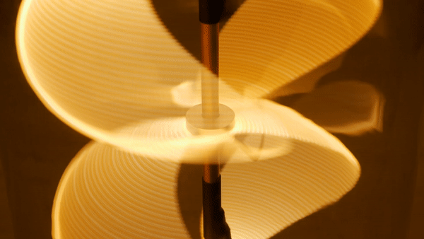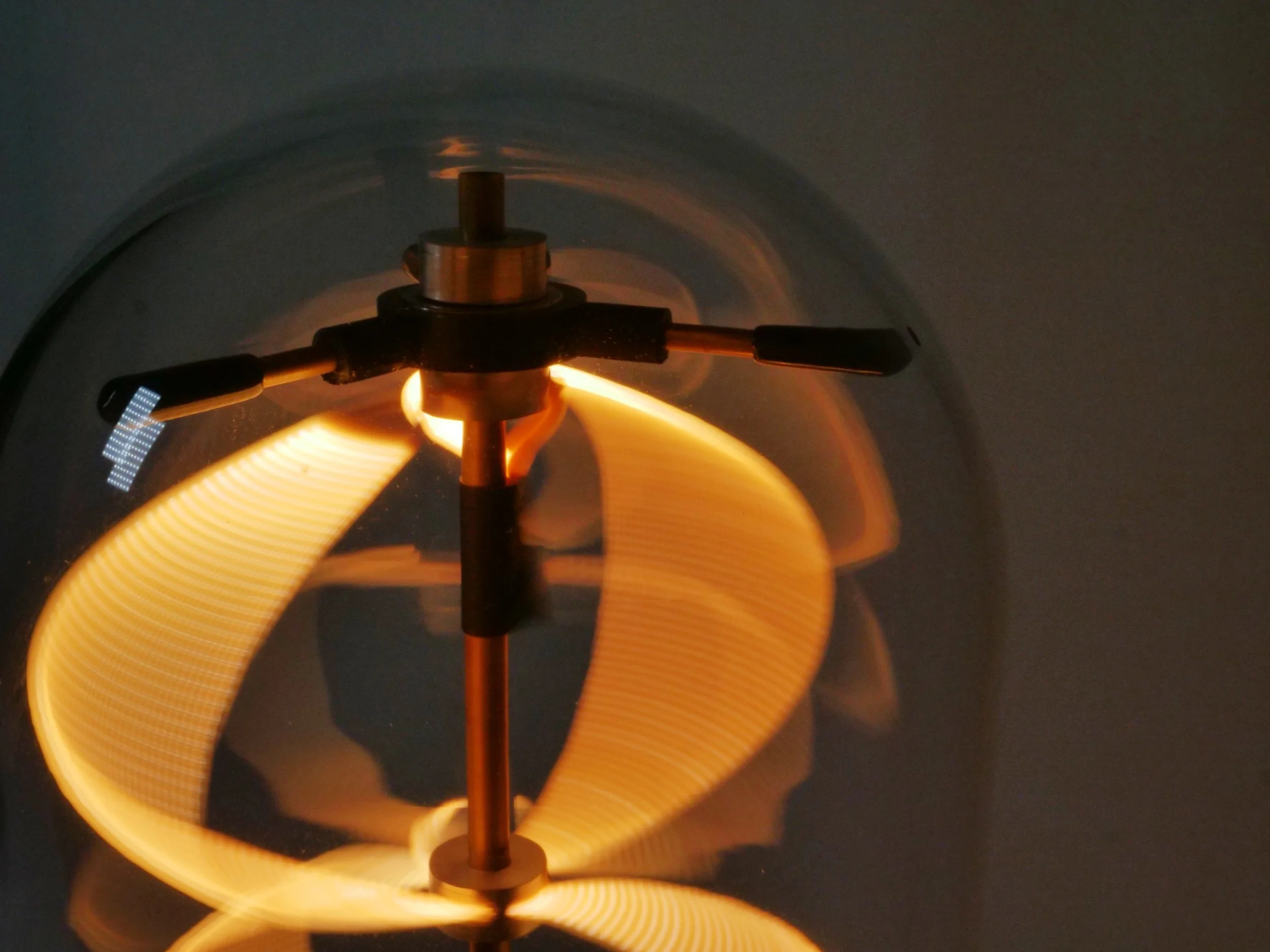 materials: LED filaments · slip ring · 3D printed components · aluminum · brass · glass · custom electronics · ESP32-S2 · brushless motor