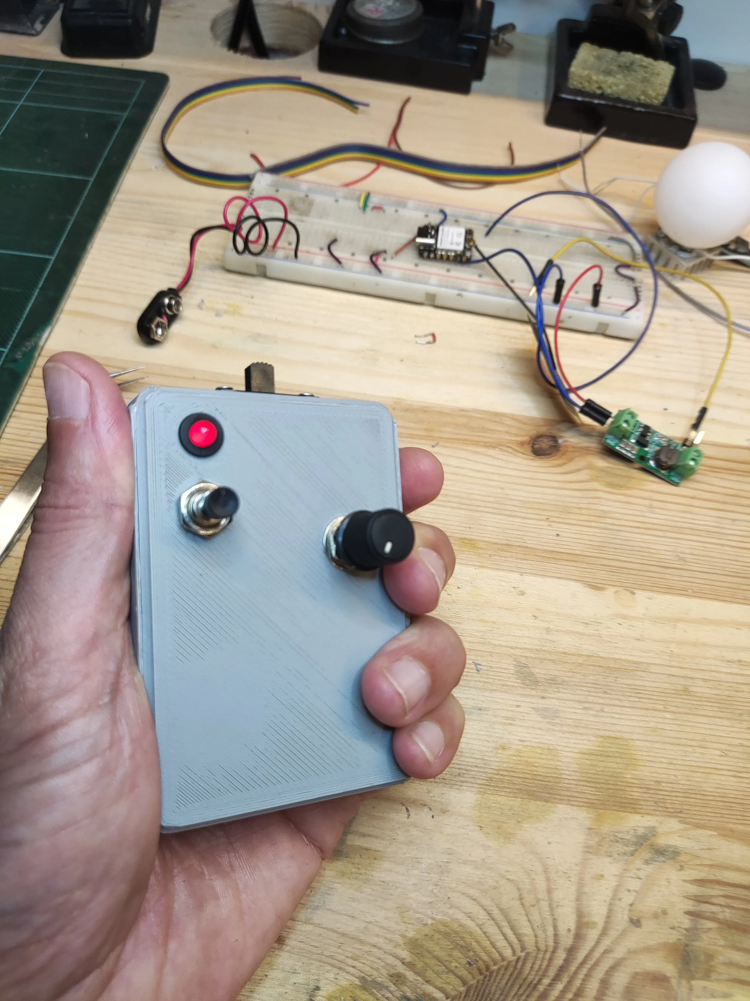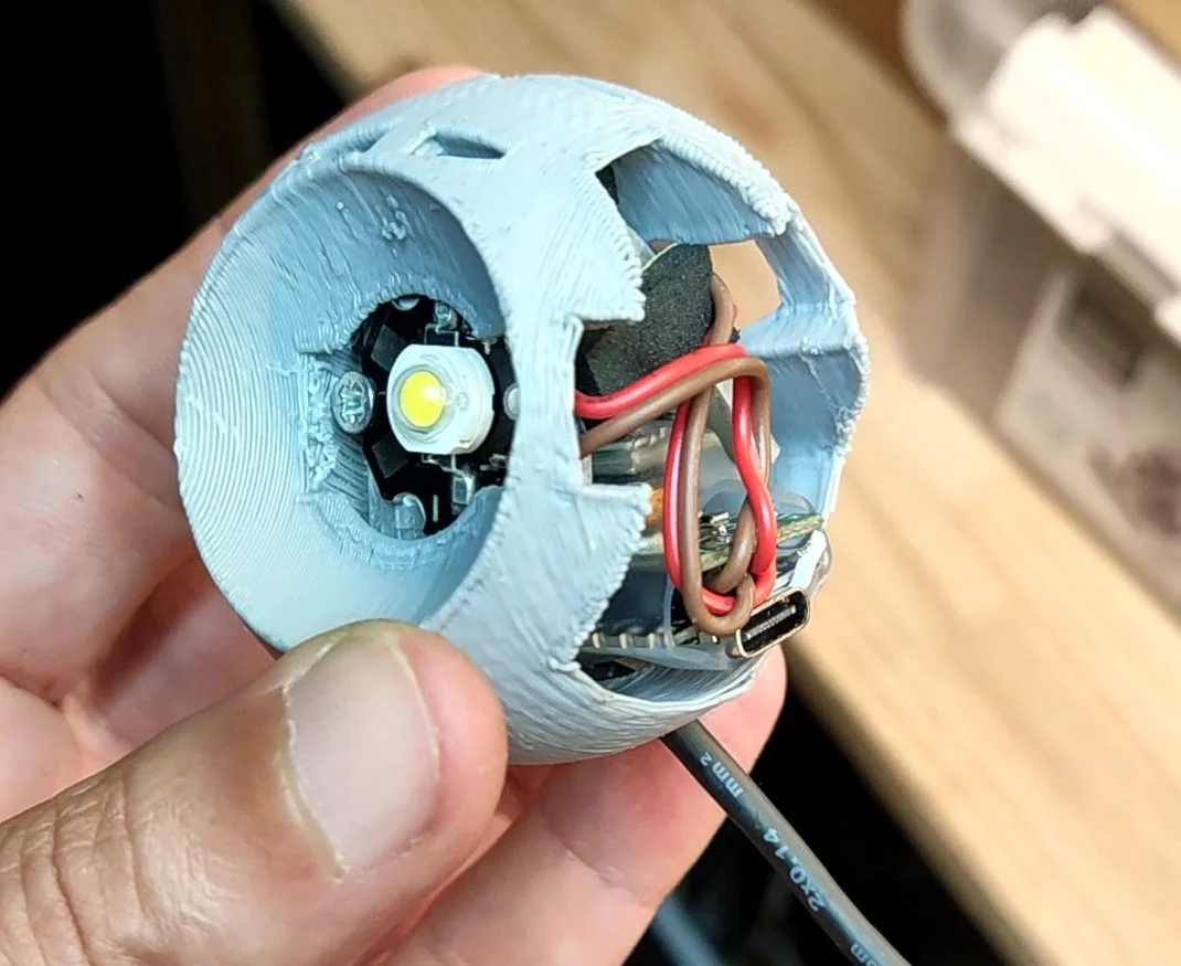 Past collaborations with artist and filmmaker Arash Nassiri led to the creation of an electronic marionette for his film A Bug’s Life. I was commissioned to design a miniature praying mantis head, integrating wireless-controlled high-power LEDs for the eyes (embedded in ping pong balls). This involved both embedded electronics and highly intricate fabrication. Using a custom-built remote control, the behavior of the eyes could be precisely adjusted in real time during filming.